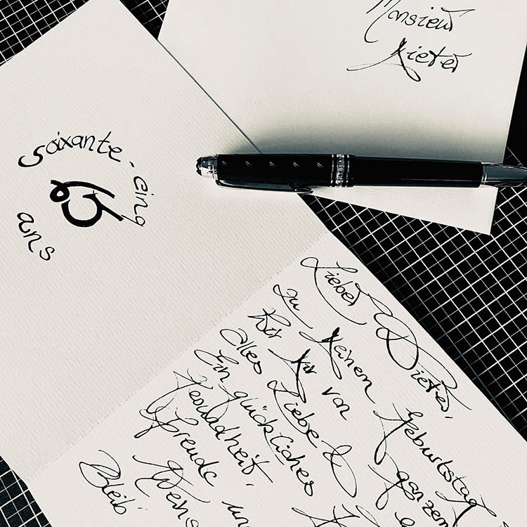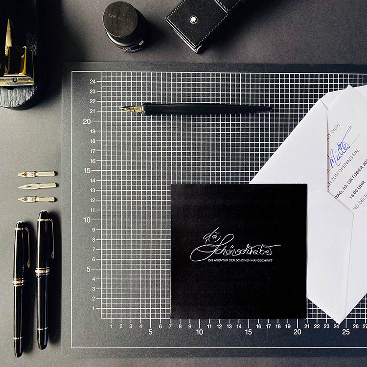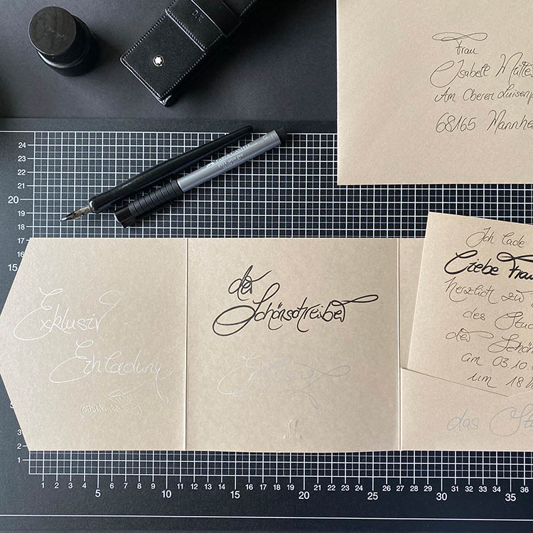 Der Schönschreiber schreibt für Ihr Unternehmen Einladungen, handschriftliche Briefe zur Neukundengewinnung, Paketbeileger, Adressen auf Kuverts, uvm. – alles mit der persönlichen Note einer charakterstarken Handschrift.