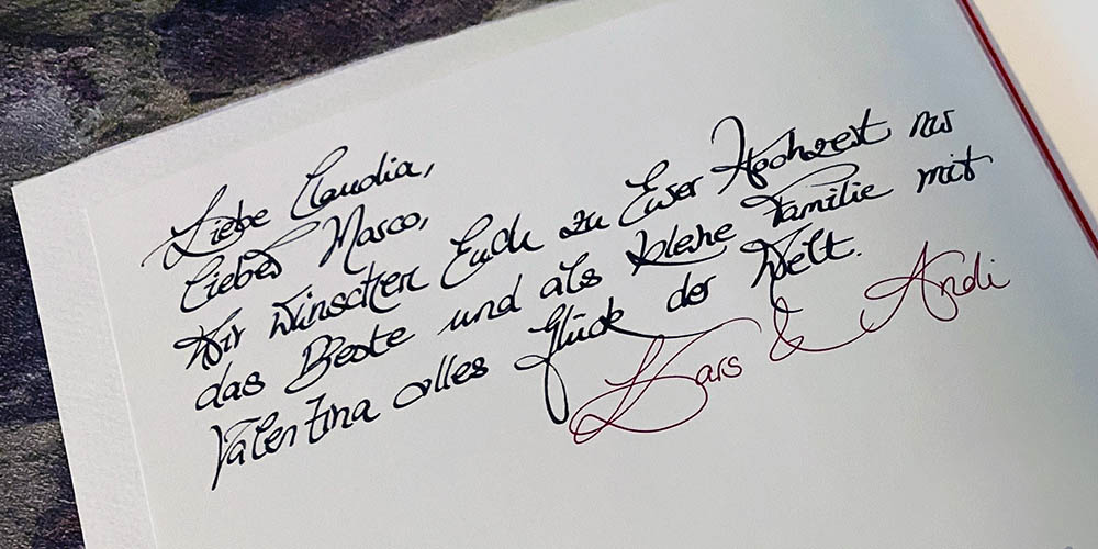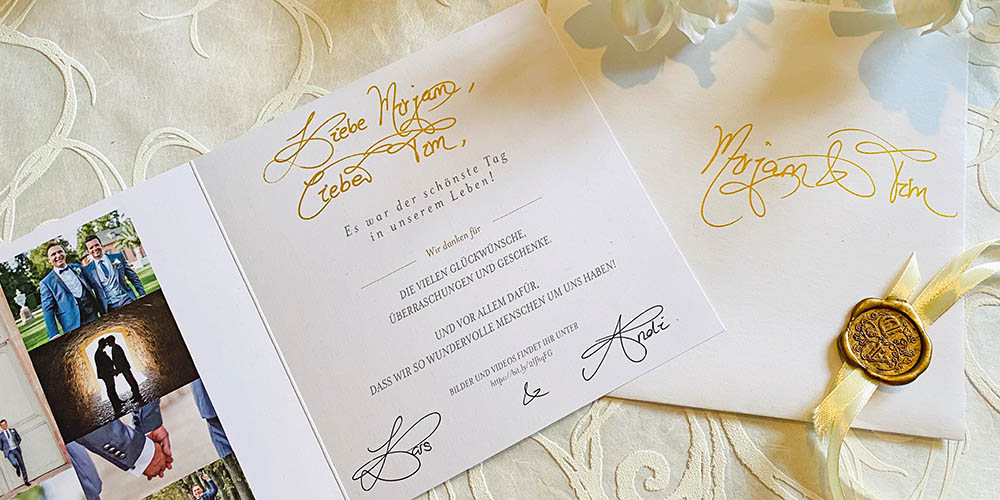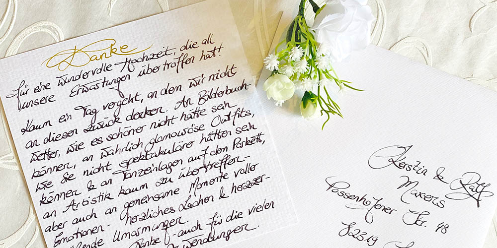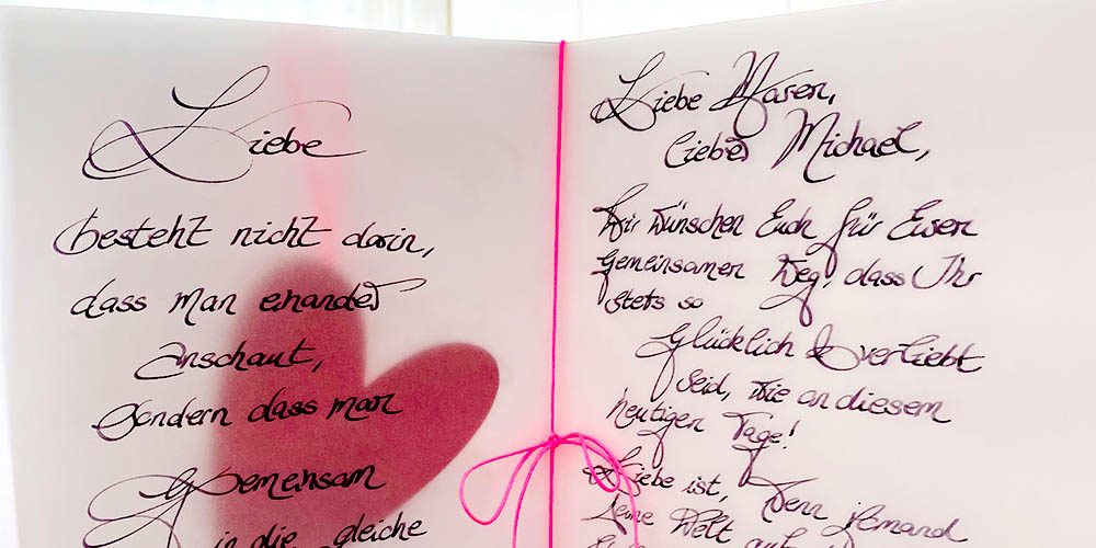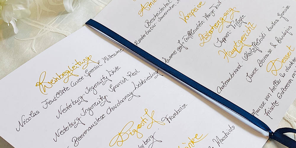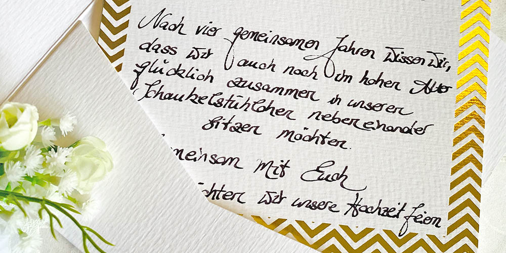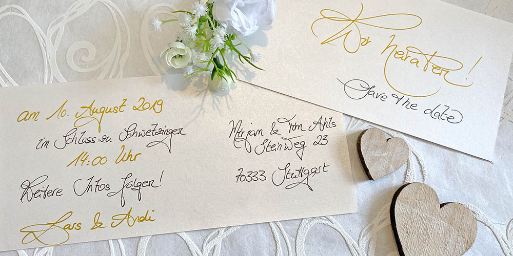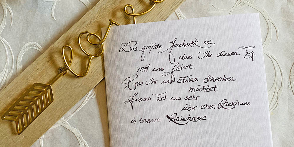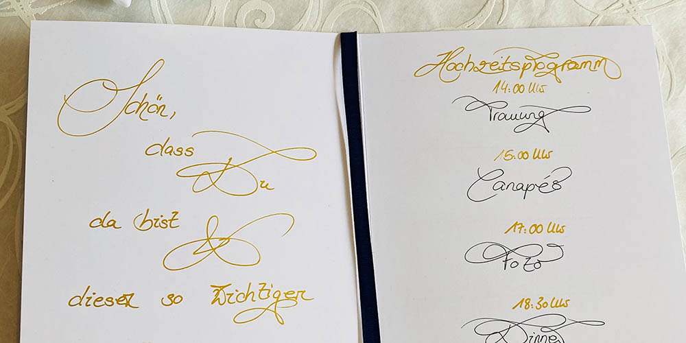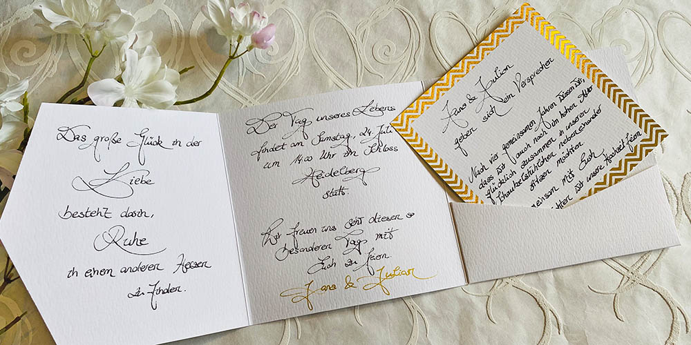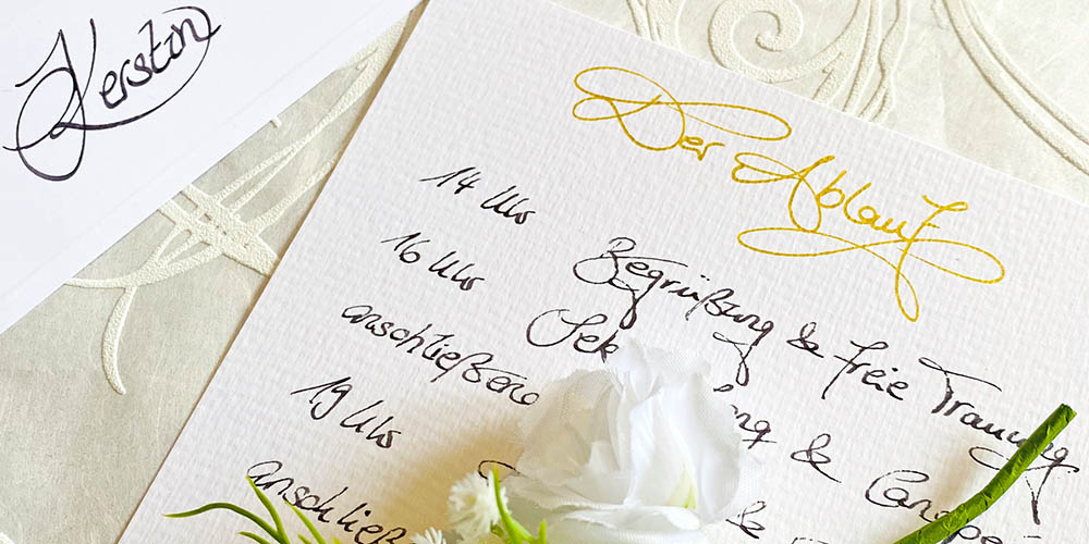 Personalisiert oder komplett handschriftlich gestaltet – zum Arrangement rund um diesen besonderen Tag berate ich Dich gerne persönlich.