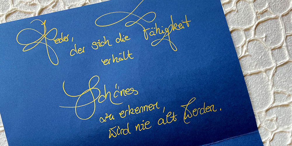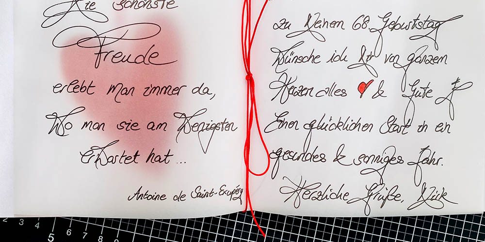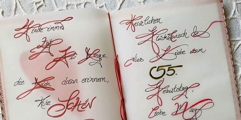 Zugegeben, Emails, WhatsApp, Facebook und Co. sind praktisch und ersetzen das Schreiben per Hand. Wenn Du heute jemanden wirklich erreichen willst, gelingt dies am Besten mit Handgeschriebenem. Neben der eigentlichen Botschaft wird dabei eine unausgesprochene übermittelt: Du bist mir wichtig!
