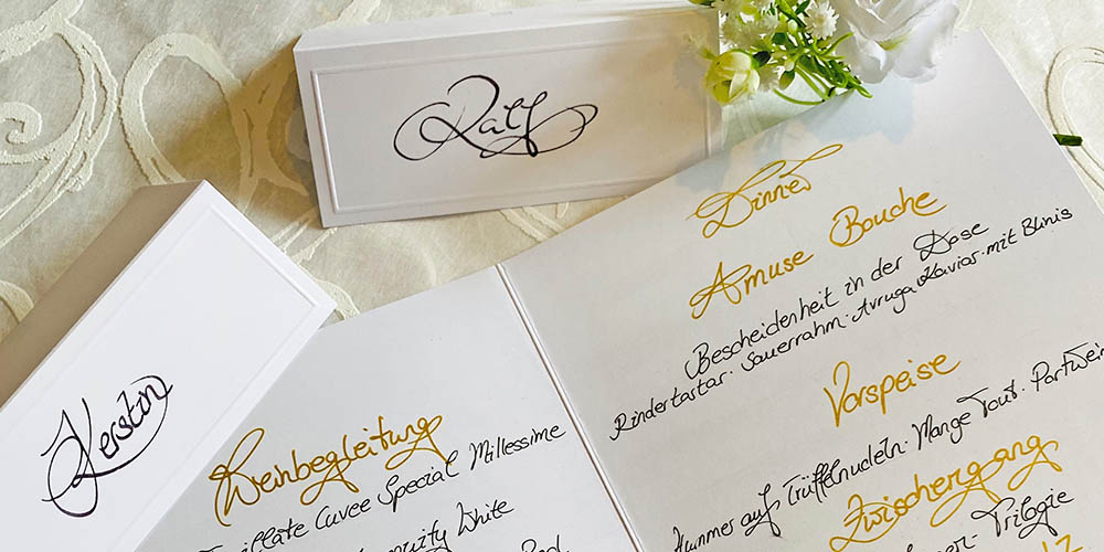 Setze auf Deiner Hochzeit ein einzigartiges Statement. Außergewöhnlich schöne, handgeschriebene Unikate, die in Erinnerung bleiben und aufbewahrt werden. Sie erzählen an dem schönsten Tag Deines Lebens von Zuneigung und Wertschätzung, Eleganz und Individualität.